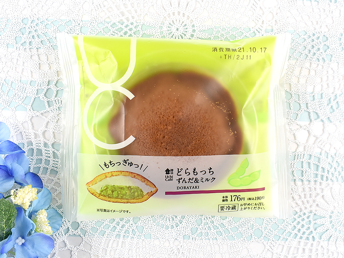 東北地方の郷土料理としておなじみのずんだは、お餅にのせたり、シェイクにしたり、さまざまな形で味わえ、根強いずんだファンも多いですね。今回見つけたのは、ローソンの「どらもっち(ずんだ&ミルク)」(190円)。Uchi Caféシリーズの中でも人気の高い「どらもっち」の新作フレーバーです。ずんだ餡の味わいに注目しながら味わっていきましょう!