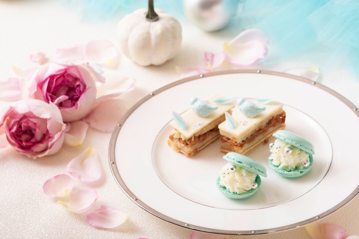 女性の永遠のあこがれ“シンデレラ”がテーマの「プリンセス・シンデレラ アフタヌーンティー~憧れの舞踏会~」は、童話“シンデレラ”のロマンチックな世界感が、物語に登場するキーアイテムを使った繊細なスイーツの数々で表現されています。