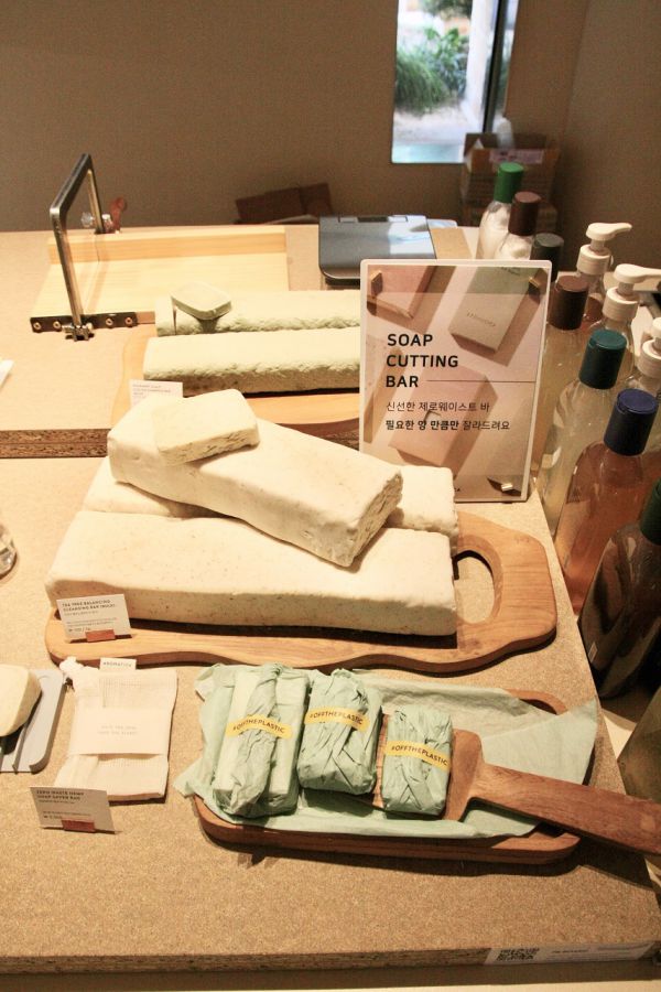 容器を持参してグラム単位で購入することもできる「リフィールステーション」があったり、コットンなどの使い捨て商品の代わりに、洗って使用できるコットンなどコスメツールも充実。