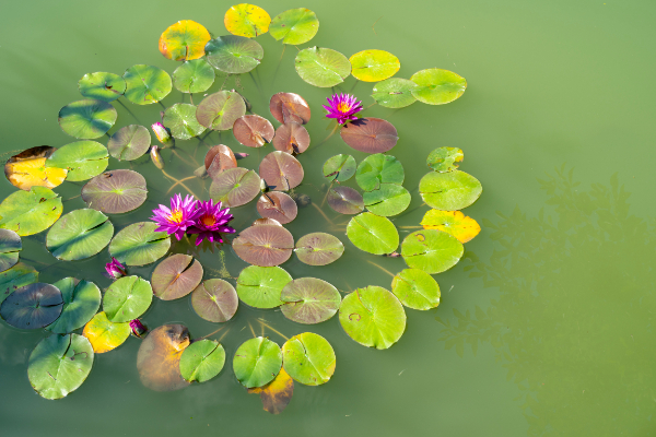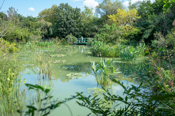 こちらがクロード・モネの絵画を忠実に再現した「水の庭」。豊かな緑に囲まれた池の様子は、絵画そのもの。水面には、睡蓮がかわいらしい花を咲かせていました。