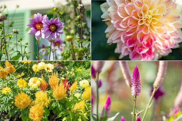 睡蓮の絵画で有名なクロード・モネがフランスで造った庭を模した庭園「花の美術館」は、浜名湖花博の開催時に造られたもの。「花の庭」と「水の庭」で構成されていて、色づかいが素敵な洋館の横に広がる「花の庭」には、ダリアやケイトウ、アマランサスなど、色とりどりの花が咲いていました。