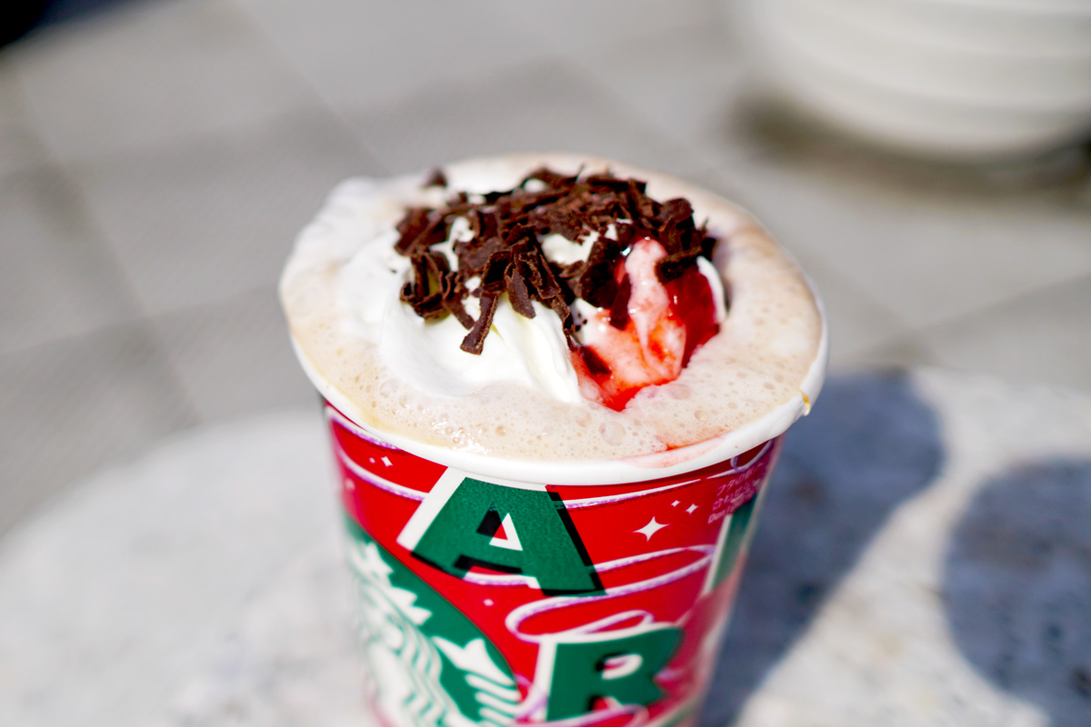 【スタバ新作・実食レポート】クリスマス2021年“いちご×チョコ”フラペチーノ「チョコレート ストロベリー フェスティブ フラペチーノ®」が登場。おすすめ無料カスタマイズも!