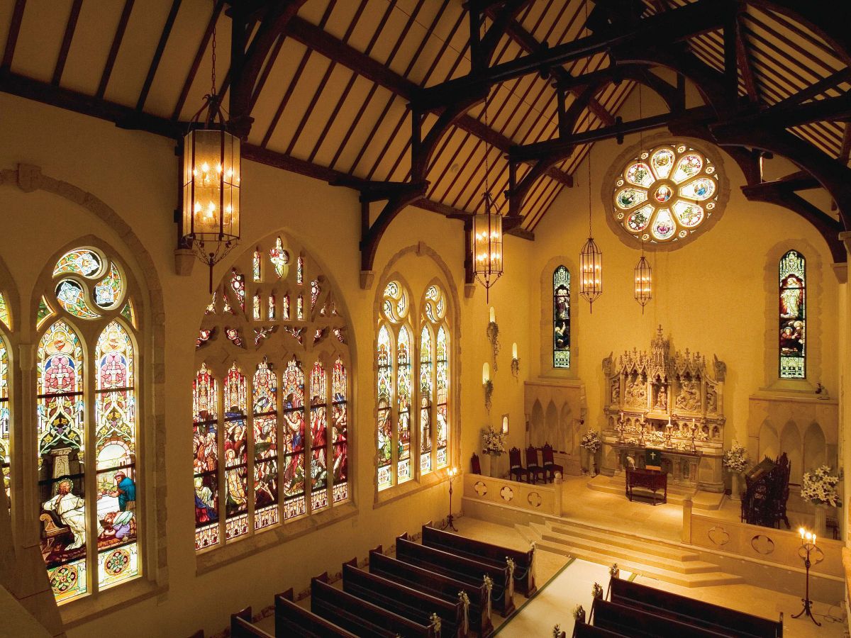 英国の貴族の館(マナーハウス)をモチーフに、資材や工法など、本物にこだわって建築された美術館。館内には3つの礼拝堂があり1800年代中心の色鮮やかなステンドグラスが圧巻! 一番大きなセント・ラファエル礼拝堂ではアンティークパイプオルガンの生演奏も聴くことができます。セント・ガブリエル礼拝堂ではアンティークオルゴールの生演奏や週末コンサートを開催しています。敷地内には結婚式ができるセント・ミッシェル教会やステンドグラス体験教室やショップなどもあり、魅力いっぱいのスポットです。