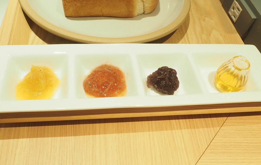 さらには三重県桑名市の老舗養蜂場で作られた「九華はちみつ」(最右)、三重県伊勢市でじっくりと時間をかけて炊き込んで作られる「伊勢製餡所のあんこ」(右から2つ目)など、「パンのお供」が4種類付き、どれも素材本来の味が活きています。東海地方在住者でも知り得なかった逸品との出会いに、次第にテンションが上がります。