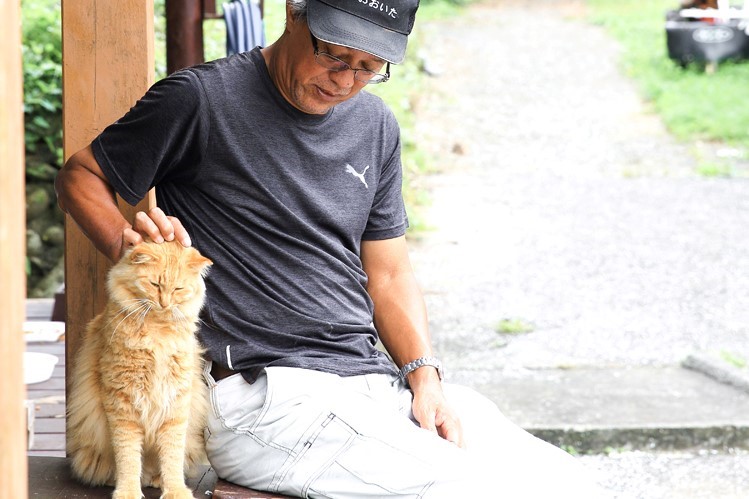 島民の方にごあいさつ。猫をかわいがっていらっしゃる様子が伝わってきます。