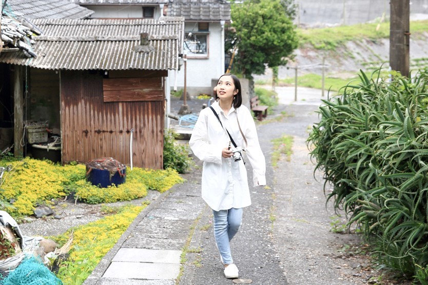 2つ目は「南のにゃんにゃんロード」へ。深島でいちばん猫の多いスポットです。民家が連なった路地を歩いていると、どこからともなく猫が集まってきて、思わず夢の「猫まみれ」が体験できました!エサを持っていないのに、この距離感はすごい!