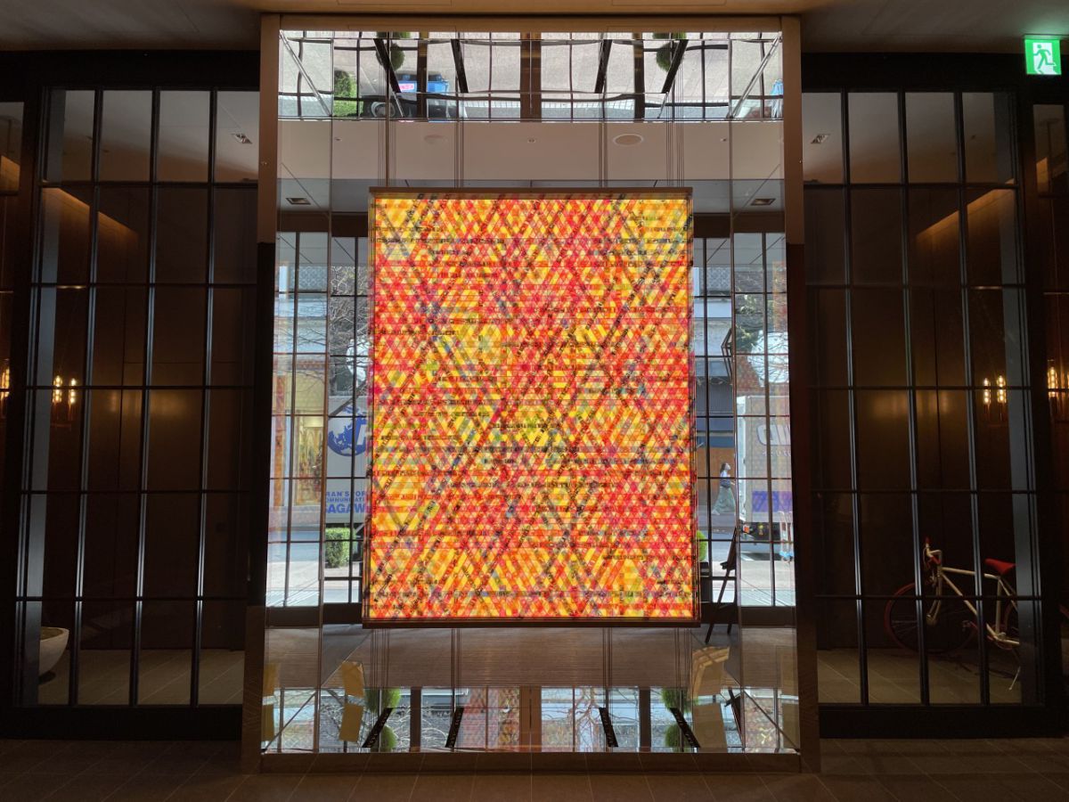 エントランスを入ると、まずドーンとアートがお出迎え。 こちらアートをよ〜く見てみると、銀座の街並みを写したフィルムが重なって出来上がっているもの。