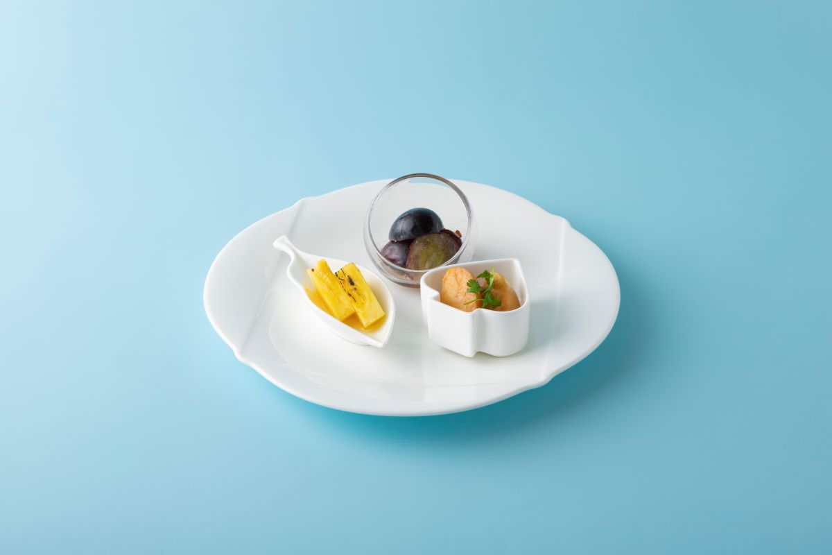 中段はコンポートやソテーなどのフルーツプレート。
