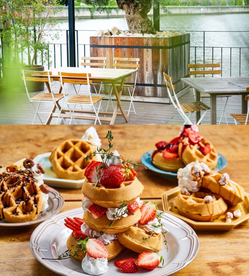 写真映えする料理やデザートの数々で食欲を刺激してくれる水辺のダイニングカフェ。開放的な空間という安心感もあるので、たまの息抜きに行ってみたいですね。