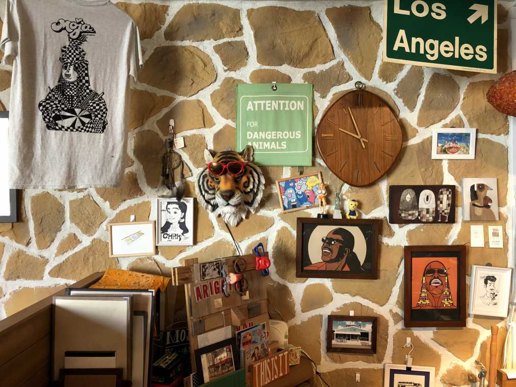 店内のインテリアは柄のソファや壁紙、至る所に飾られている絵など、カラフルで賑やかな印象。アメリカンなモチーフの小物が多く見られます。
