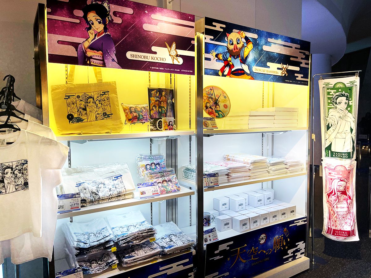 天望回廊 フロア450の特設ショップでは、ここでしか買えない限定グッズも多数あり!Tシャツやトートバッグ、BICボールペン、プリントクッキーなど、ラインナップは豊富。