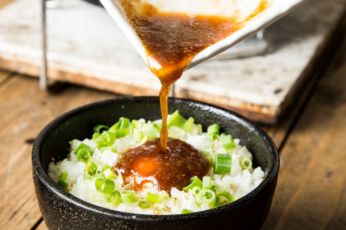 食べ終えたあとのタレを、うずらの卵やネギ、ゴマなどの薬味の乗ったご飯にかけます。溶け込んだ肉汁まで余すことなく堪能できますよ!