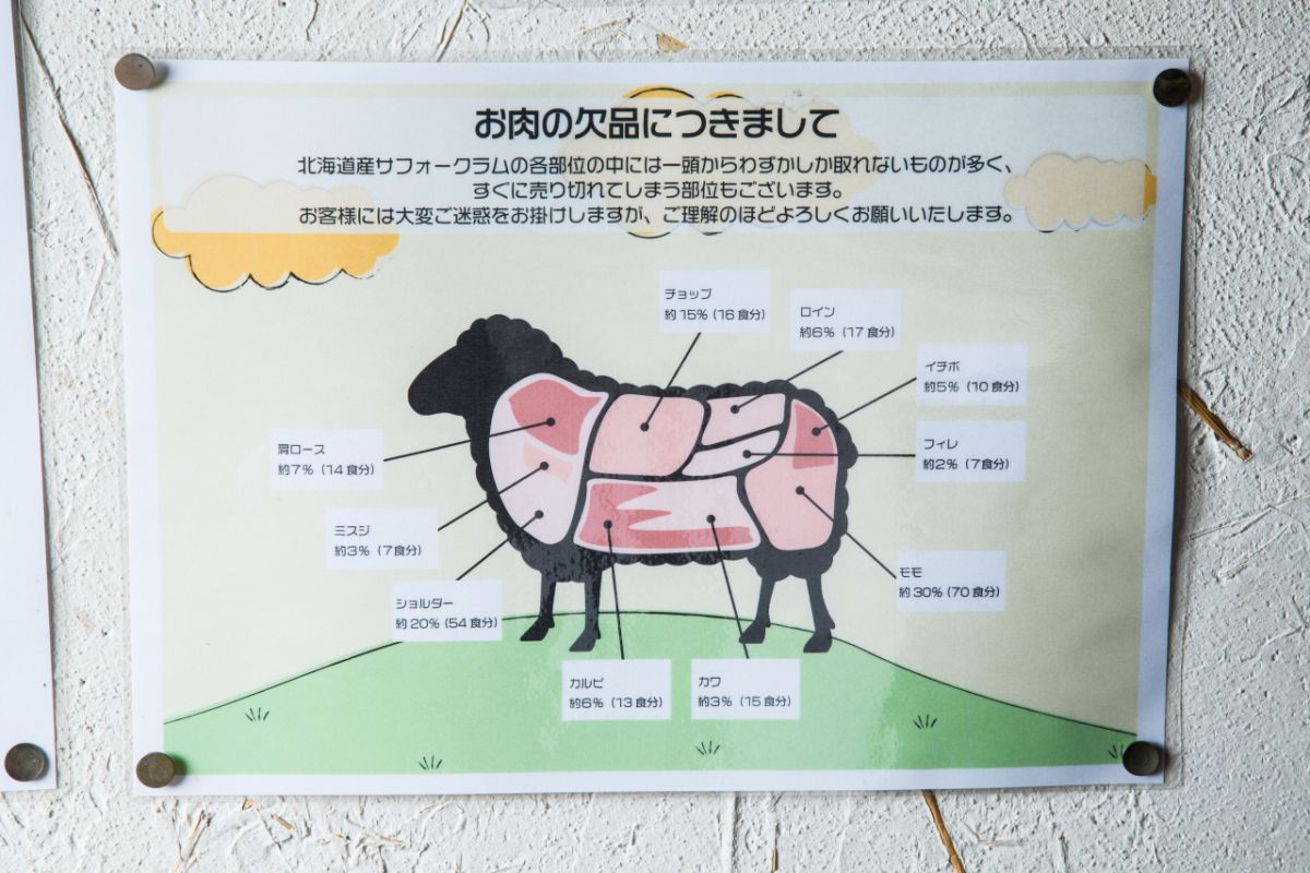 その7丁目に店を構えるのが「士別バーベキュー」。道産サフォーク羊肉の専門店です。ちなみに士別は北海道の北部にある街で、古くから羊の生産が盛ん。士別バーベキューはその土地で約180頭のサフォーク羊を飼育しています。