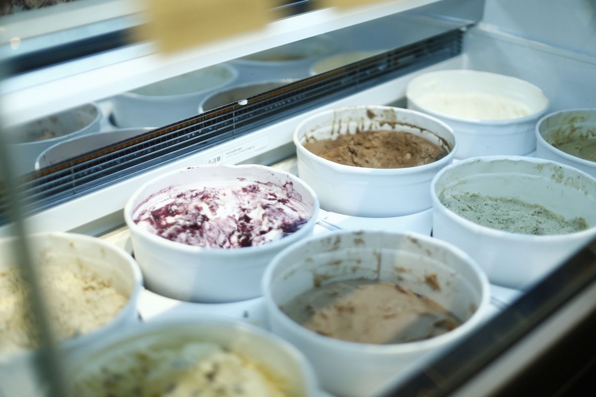 手作りのアイスクリームも「無農薬アップルミント&チョコチップ」や「ヨーグルト&阿蘇ブルーベリー」など、ここでしか味わえない農家の果物を使った逸品が揃います。