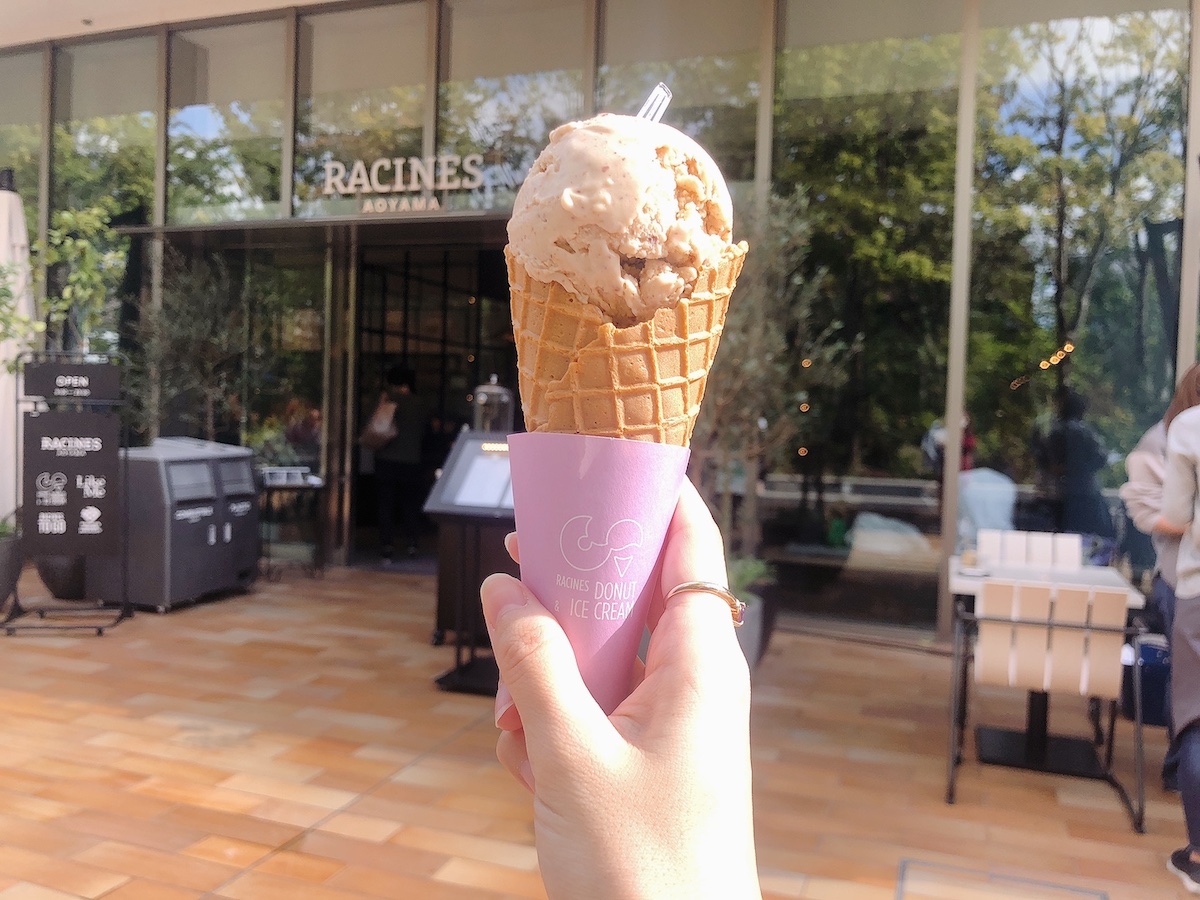 レストランの隣にはスイーツが堪能できる「RACINES DONUT&ICE CREAM(ラシーヌドーナツアンドアイスクリーム)」を併設。池袋のセントラルキッチンで手作りされたドーナツとアイスクリームがずらりと並びます。