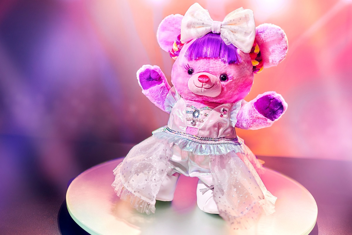 ピンクのかわいいユニベアシティ“ペパロニ”がステージで華やかにパフォーマンスを披露する姿を表現していて、ぬいぐるみ専用コスチュームも華やか!