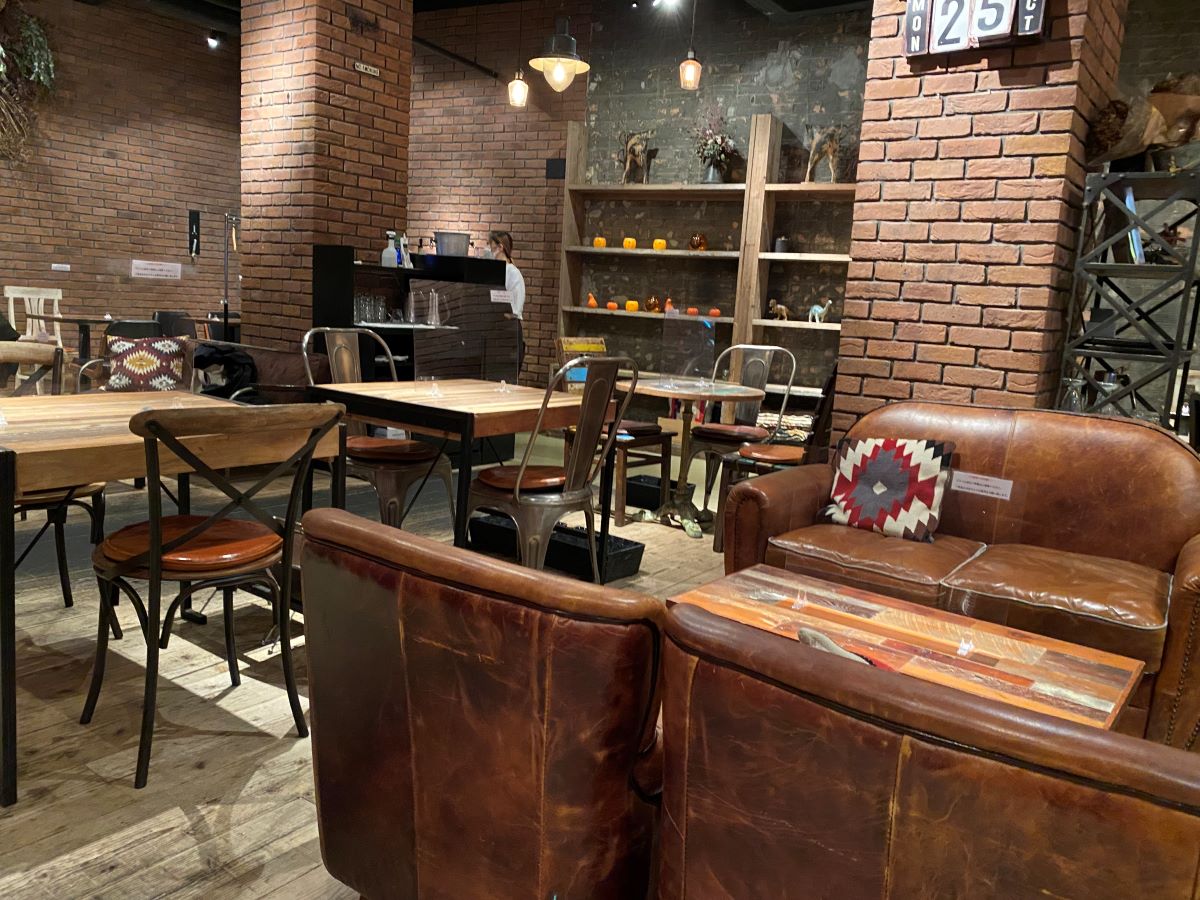 お店に入ってみると、まずはその広々とした店内の作りにびっくり。アメリカンアンティークな家具が置かれ、大人っぽい内装が印象的です。またソファやカウンターなどさまざまなタイプの座席があり、ひとりでも友達同士でも楽しめる空間になっています。