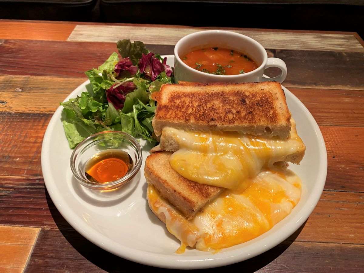 4種のチーズを楽しんだら、締めはメープルシロップで味変!名物「グリルドチーズサンド」