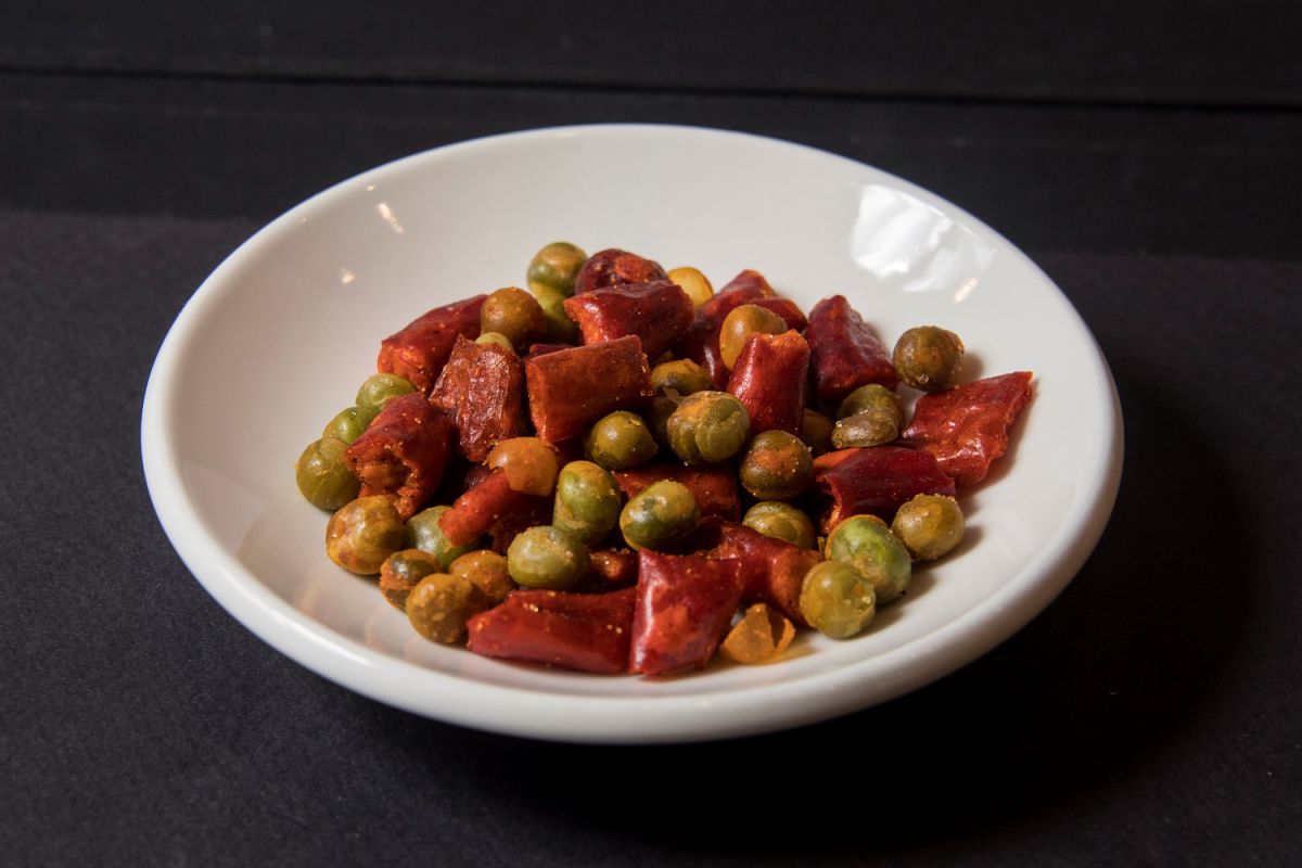 唐辛子をスナックに変身させた商品もあるんです!「香酥脆椒-台式甘梅分享袋」 (120g/180元)は、唐辛子とエンドウ豆をサクサク食感のお菓子にしてあり、そのまま食べることができます。