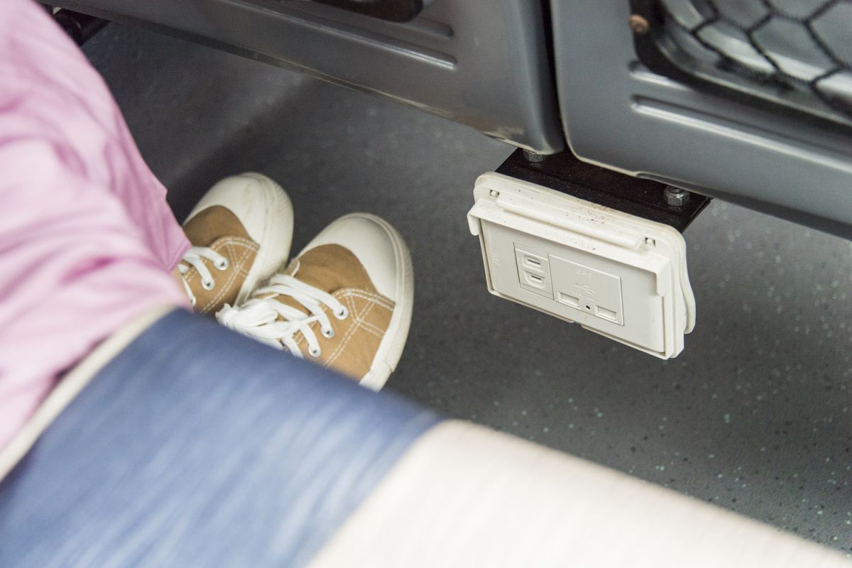 車内には携帯電話の充電などができるUSBプラグもあります。充電が少なくなっている時にも、乗車中にチャージできちゃうんですよ!(バス内で充電ケーブルのレンタルはしていません。持参が必要です)