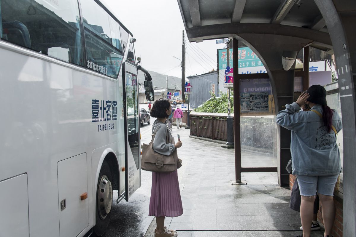 帰りのバス停は、メインストリートの入り口にあるセブンイレブンからさらに上に行って、100mほど歩いたところにあるバス停。こちらは台北行きで先に乗車できるバス停なので、こちらから乗車する方が、席がある確率が高いです。帰りも同じく片道90元。おつりのないように小銭を用意するか、もしくはICカードをチャージしておいてください。(コンビニエンスストアでもチャージ可)乗り方は行きと同じです。