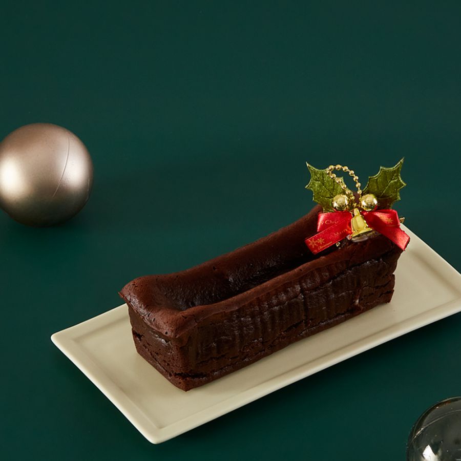 クーベルチュールチョコレートを贅沢に使い北海道産の溶かしバターを入れて、低温でじっくり丁寧に焼き上げた「ショコラテリーヌ」2700円。カカオの風味が際立ったしっとりと濃厚な生地は、繊細でなめらかな口どけと芳醇な香りが引き立つ、まさに極上のデザートです。室温に少し戻すとより滑らかな口どけが楽しめます。