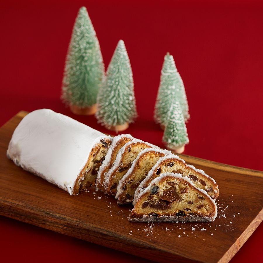 クリスマスが近づいてくる間、少しずつスライスして食べていく伝統的なアドベントスイーツ「シュトーレン」4320円。発酵パン生地にラムレーズン、いちじく赤ワイン漬け、オレンジピール、レモンピール、きざみアーモンドをたっぷり練りこんで焼き上げました。日を重ね熟成し、奥深くなる味の変化をお楽しんで。
