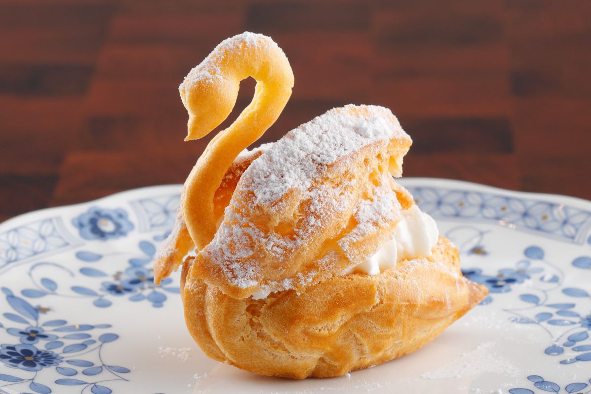 しなやかなフォルムが印象的な「スワンシュー」は、固めのシュー生地の中に、卵の風味たっぷりのカスタードクリーム&甘さ控えめの生クリームをイン。白鳥の形のシュークリームは、どこから食べようか迷うほどフォトジェニック。