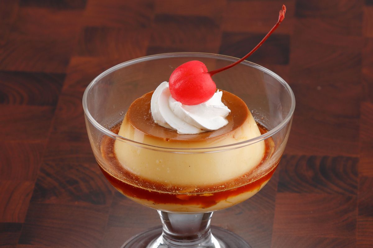ほろ苦いカラメルソースがかかった「昔ながらのカスタードプリン」は、時間をかけてじっくりと蒸し焼きに。濃厚な卵のコクを味わえるシンプルなプリンは、昔懐かしい固めの食感。