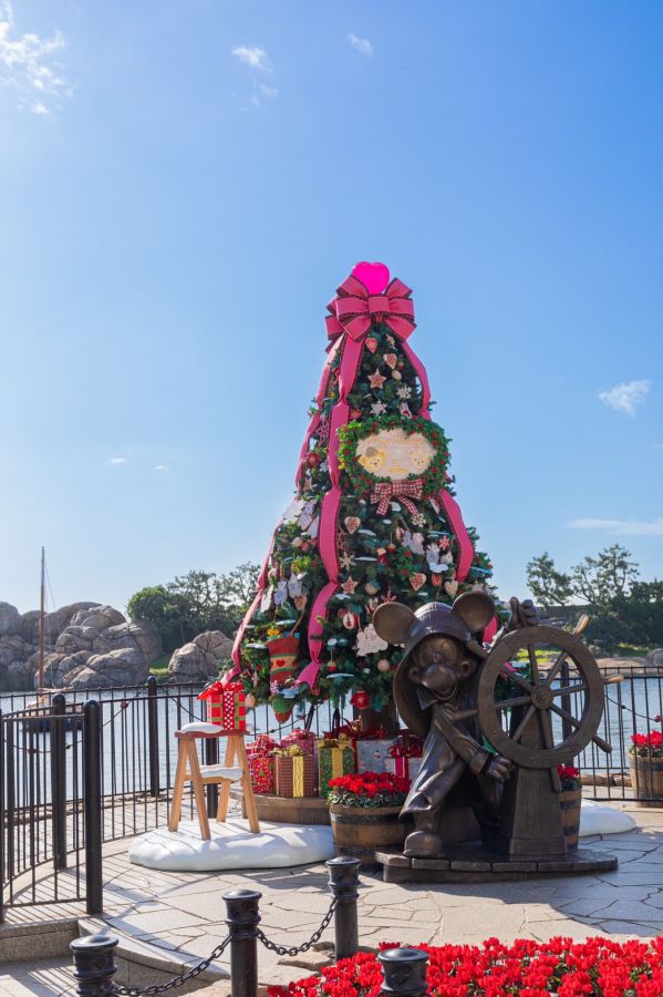 例年通り、ミッキーの銅像のところに、クリスマスツリーが。今年は大きなクリスマスツリーの設置はないので、ここでの記念撮影も人気のようでした。ツリーにはダッフィーたちのオーナメントが飾られているので、それにも注目です。