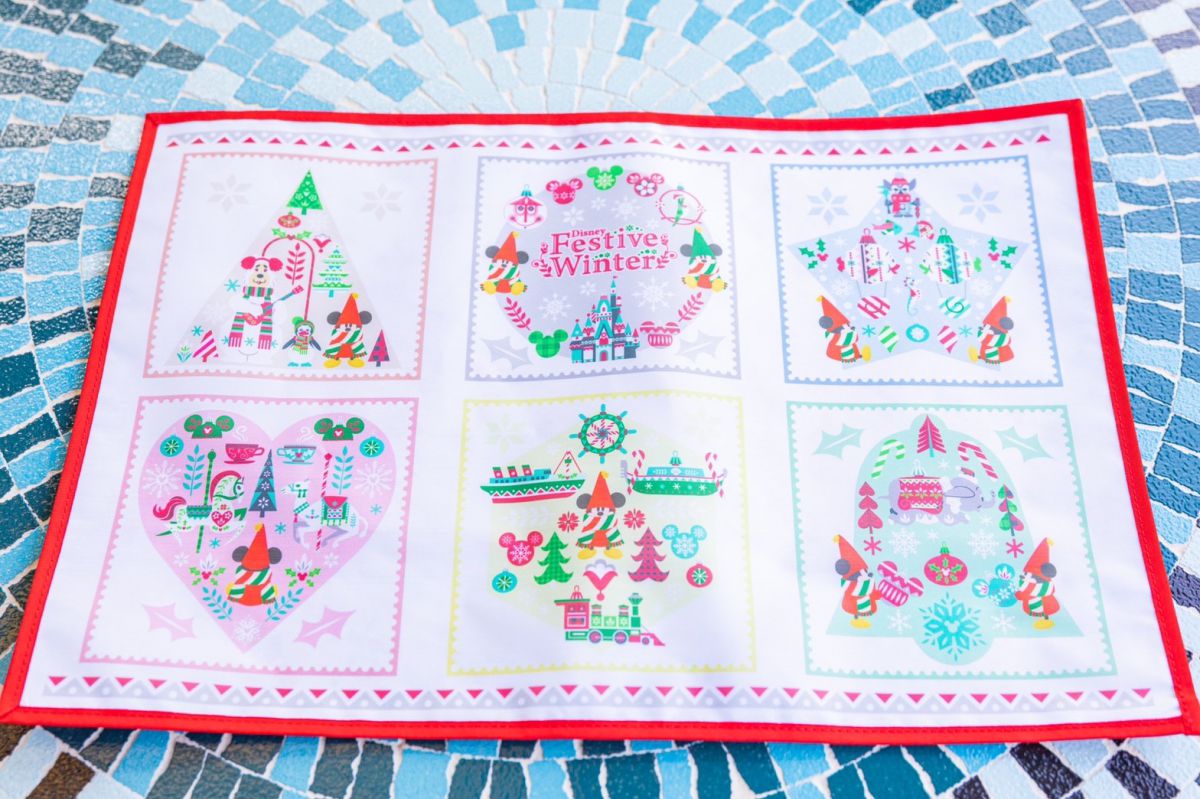 このスペシャルセットには+700円でスーベニアランチョンマットをつけることができます!今年のクリスマスに登場した”リルリンリン“がパークを楽しむ様子と東京ディズニーリゾート内のモチーフをデザインしたリバーシブル。おうちでクリスマス気分が楽しめるアイテムです。