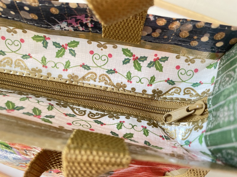 ファスナーも付いていてきっちり閉められます。温泉などに行った時のサブバックとしても使えそう!