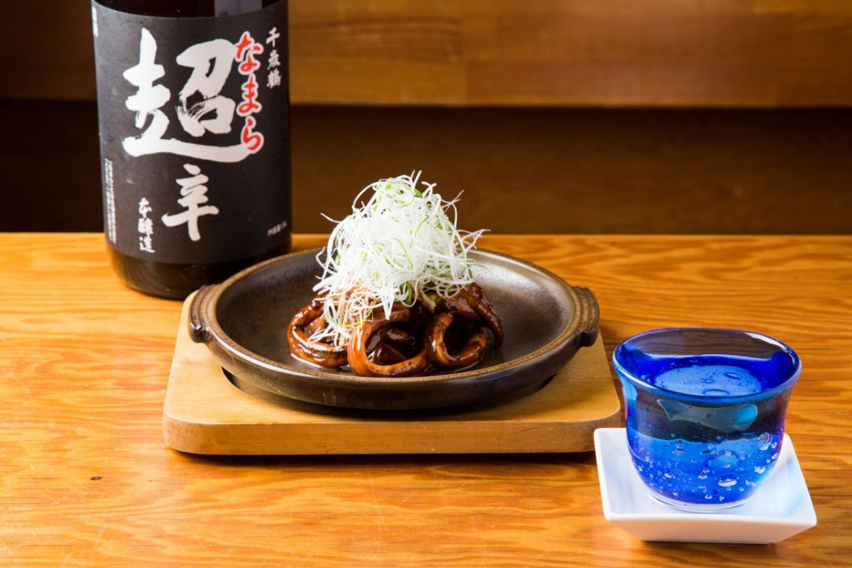 「いかごろ陶板焼き」1078円も名物の一つ。イカを濃厚なゴロ(内臓)とともに豆板醤を加えて香ばしく焼き上げており、お酒と相性抜群! ピリ辛の味わいの中に魚介のうま味が詰まっており、キリっとした切れ味をもつ「なまら超辛」605円を冷やをあわせれば、どんどんグラスが空いてしまいます。