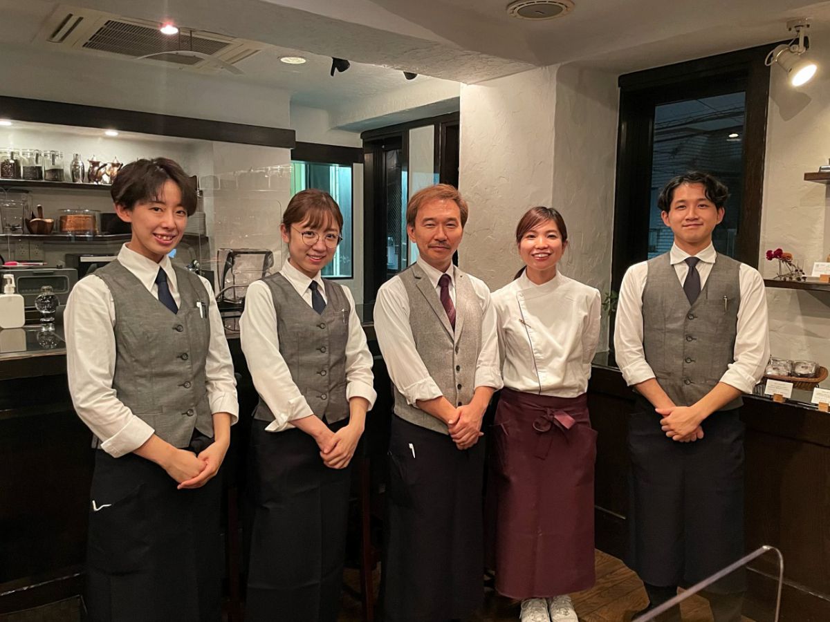 ひげのマスターことオーナーの小林さん夫妻(写真中央と右隣)とスタッフの皆さん。