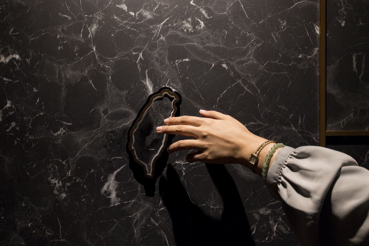大きなウイスキーの樽の入り口が目印。焼き肉店の中に、さらにウイスキーバーの入り口があるなんて、隠れ家感がありますね。そしてウイスキーバーへの入り口を開けるためには、左手にある台湾の形をしたボタンを押さなければならないんです。入り口からワクワク感たっぷり!