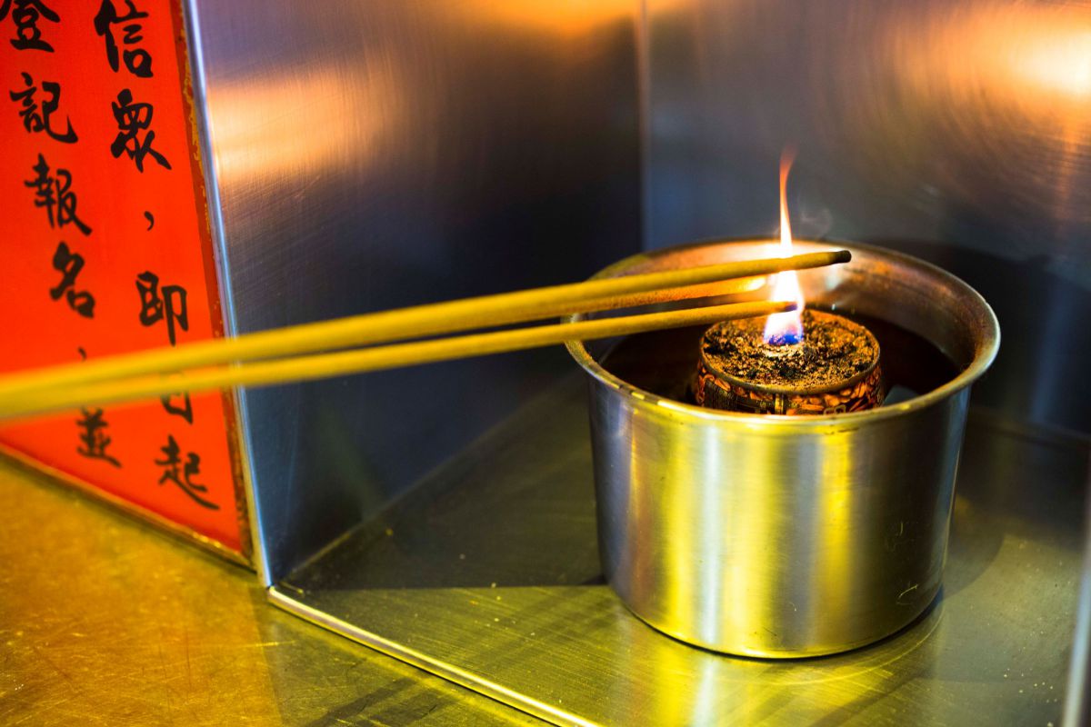 参拝が終わったら、外へ出て天公爐に線香を立てます。このとき、お供えセットを購入した人は、中からお守りを出しましょう(詳しくはのちほど!)。
