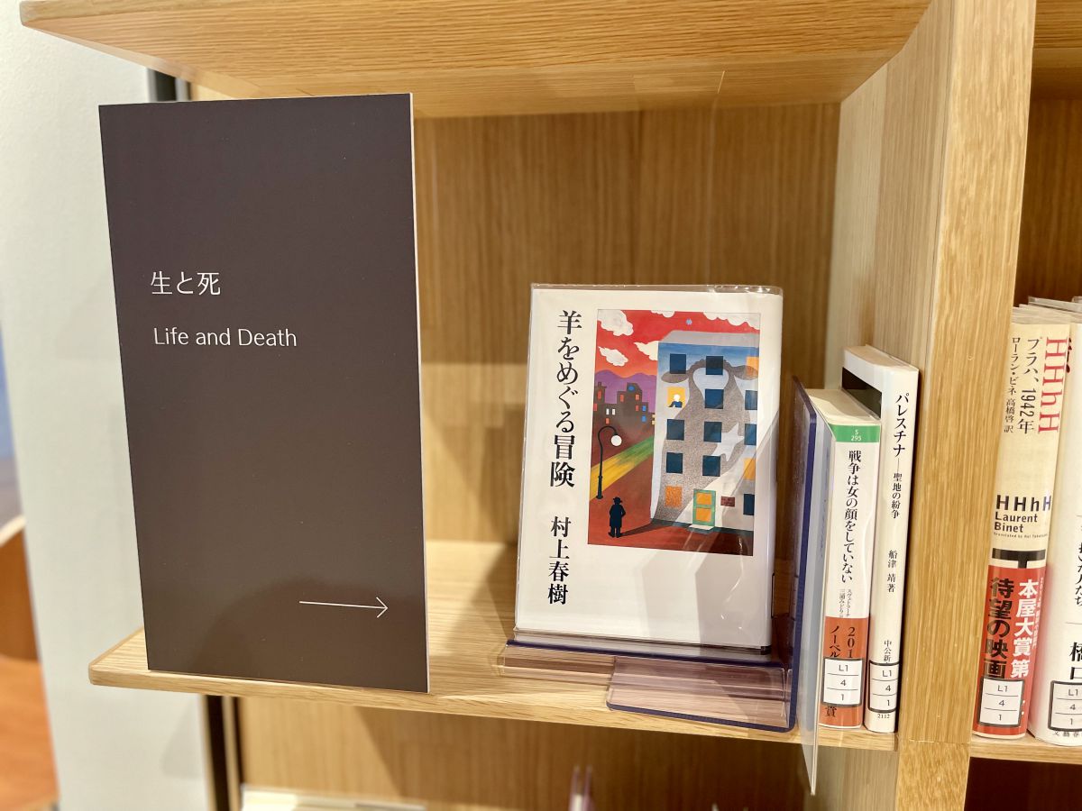 「村上作品とその結び目」では、村上作品の1冊からテーマを設け、同じ世界観を感じられる本や、村上作品の理解が深まるような本が並んでいます。