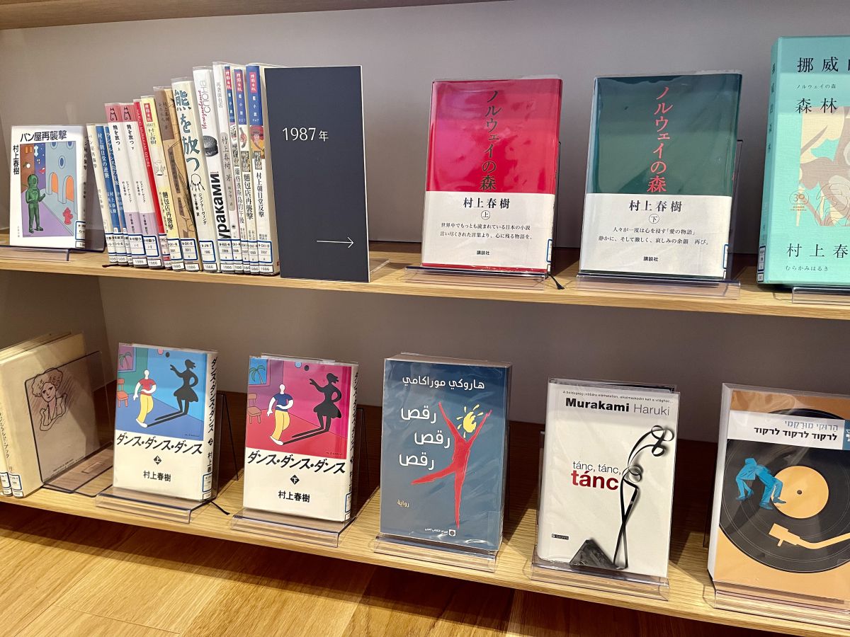 入り口側から奥に進むにつれて作品の発行年代が進みます。世界のさまざまな言語に翻訳された作品は装丁が国によって異なり、その国の文化や空気感が感じ取れちゃいます。言語がわからなくとも、眺めているだけで楽しめるはず!