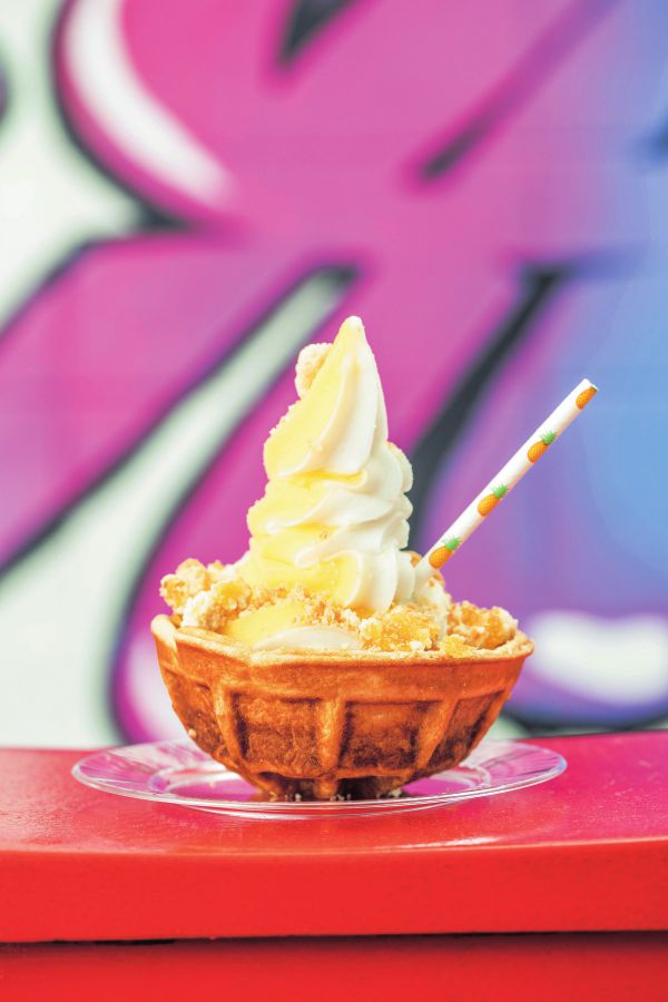 ワッフルボウルにアイスを絞り、ラハイナ名物まんじゅうクッキーをトッピングした「ザ・ラハイナ」は$6。様々なアレンジが可能なので、好きなものをたくさんのせて、自分だけのシェイブアイスを作りましょう!
