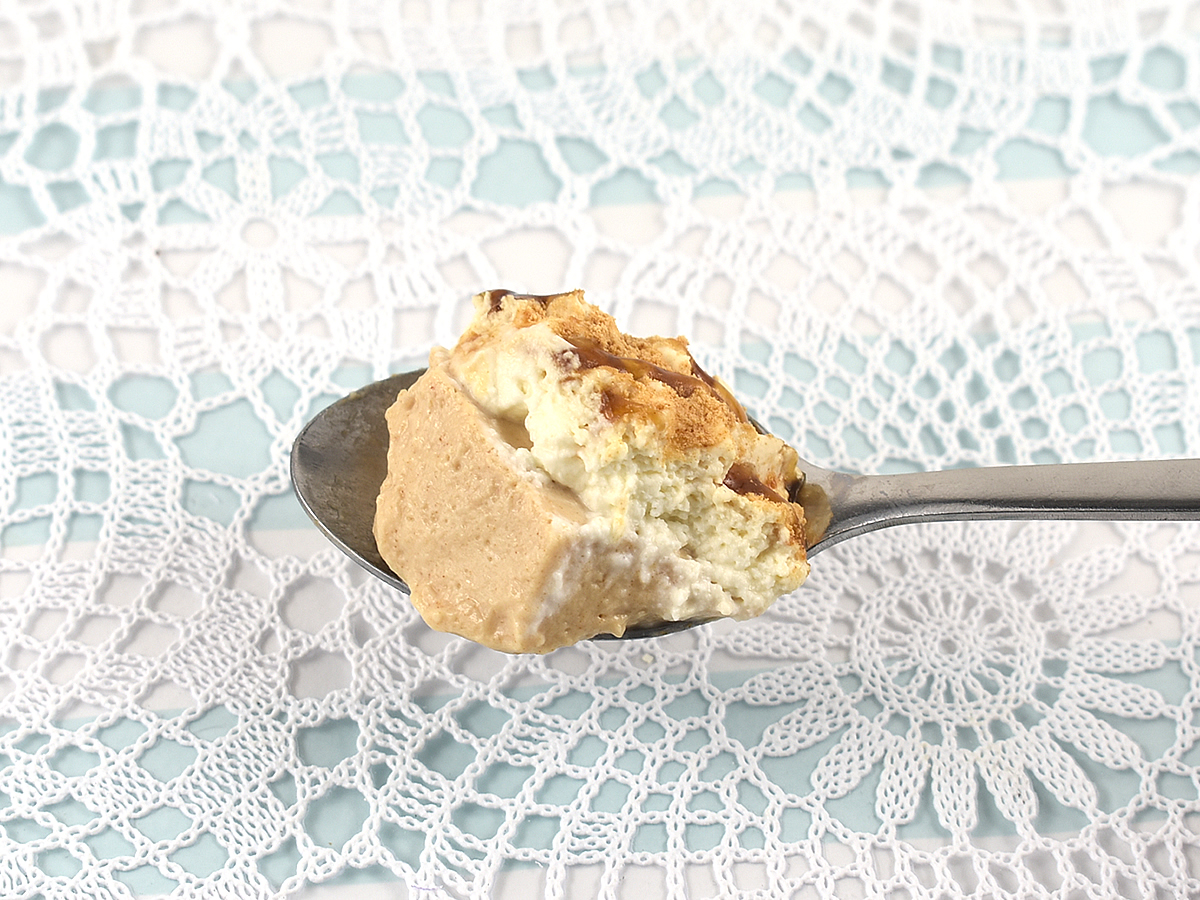 ホイップクリームはフワッと口当たりが軽くて、きなこを邪魔しない控えめな味わいです。ババロアと混ざり合い、よりまろやかでクリーミーな印象に。またトッピングのきなこと、もったりとした甘みの黒蜜ソースもよいアクセントになっています。