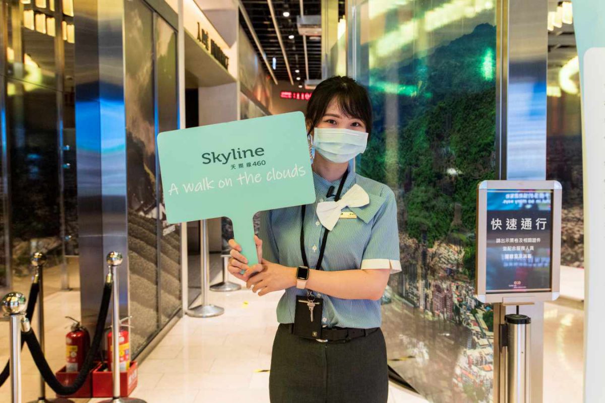 まずはチケットカウンターのある5階へ。ここが「Skyline460」のスタート地点です。開始時刻の30分前にカウンター右手に集合し、「Skyline460」のプレートを持ったスタッフにバウチャーを提示すれば受付完了です。カウンターの行列に並ぶ必要はありません。