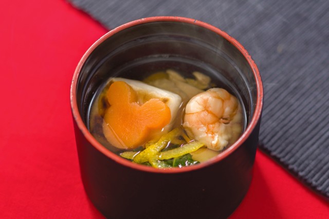 かつお出汁がベースのすまし仕立てで上品な味わいの雑煮椀は、お食事にセットの味噌汁の変更(+400円)で味わえるそうなので、こちらもぜひ。
