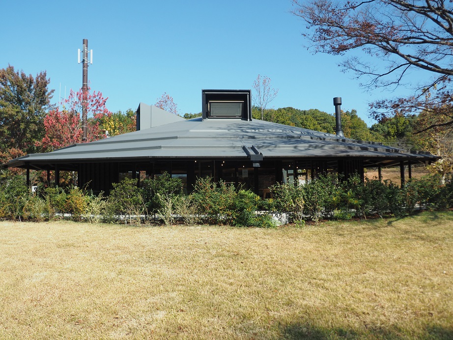 約30種類の料理をブッフェスタイルで心ゆくまで味わえる「レストランマメボシ」(ランチ2000円、ディナー3300円)。小幡緑地(本園)大駐車場から近い場所にあり、柱1本で建物を支える特殊な構造が特徴的です。