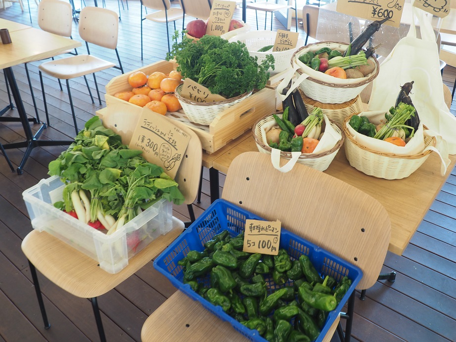 店内では新鮮な野菜も販売しています。特に「日替わり野菜セット」はさまざまな野菜がかごいっぱいに入っており、お得です。なかなかお目にかかれない珍しい野菜が入っていることもあり、新しい味覚との出会いも楽しみです。