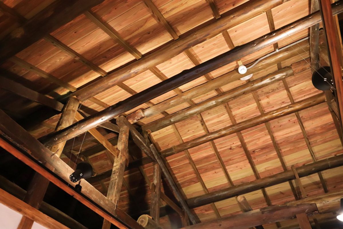 奥のお庭に面した広間は天井が抜かれ、見事な梁がむき出しに。ここでは、各種文芸講座やレクチャーが行なわれています。フラワーアレンジメント・絵画・ヨガなど、さまざまなレッスンがあり、希望者は誰でも参加できます(要レッスン料)。詳細はフェイスブック(www.facebook.com/JingHsinYuan)をご覧ください。