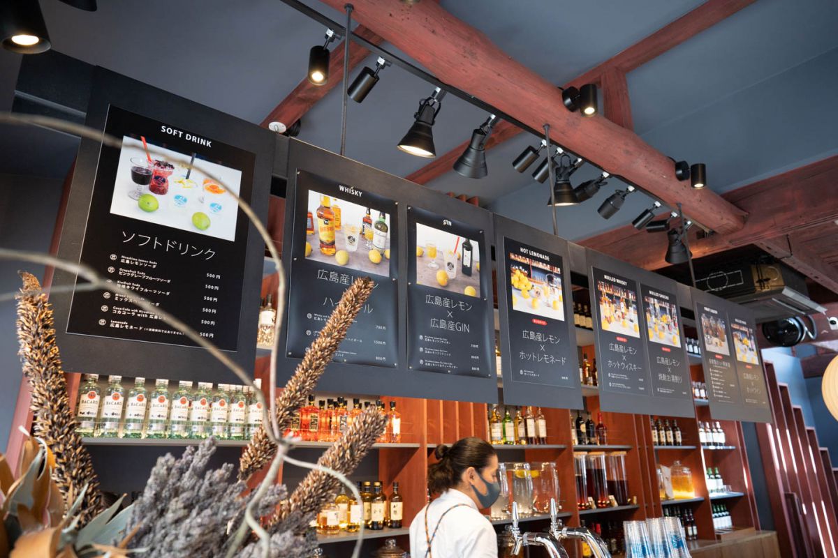 1番人気のメニューは、広島産の無農薬レモンで作る自家製シロップを使用したドリンク。ハイボールや焼酎などと割ったり、レモネードやソーダなどのソフトドリンクにしたり、このシロップを使ったメニューだけで豊富にあります。