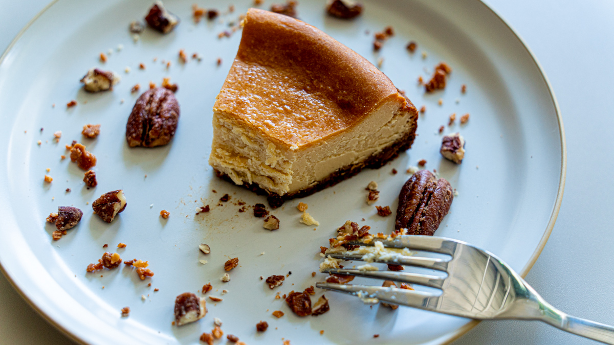 デザートの定番は「米粉のチーズケーキ グルテンフリー」450円。こちらもやさしい甘さで、その分だけチーズが濃厚に感じられます。土台には砕いたアーモンドをきび砂糖で固めた生地を使用していて、凝縮感のある味わい。香ばしくキャラメリゼしたナッツ類も散りばめられており、食後のティータイムをより豊かに演出してくれました。