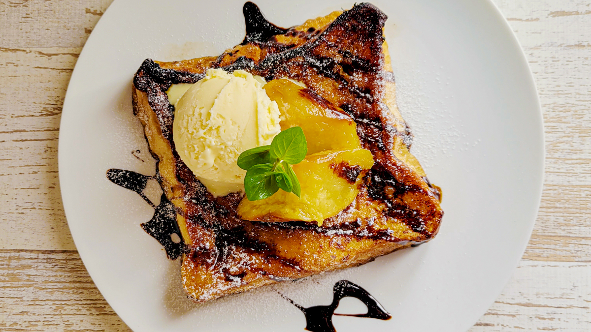 名店の食パンを使用した「季節のフレンチトースト」が自慢