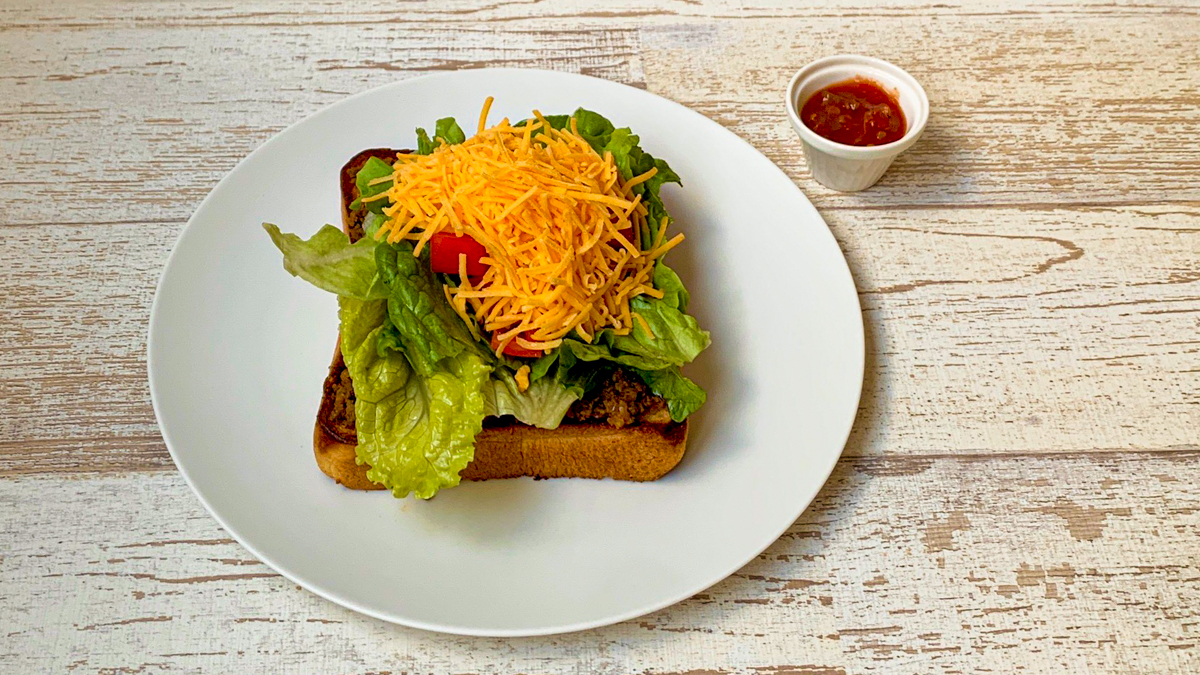 沖縄産タコスミートをはじめ、レタスやトマト、たっぷりとチーズをのせているのはタコライスならぬ「タコストースト」850円。もはや沖縄のソウルフードともいえるタコスをトッピングしたトーストで沖縄の風を感じましょう。
