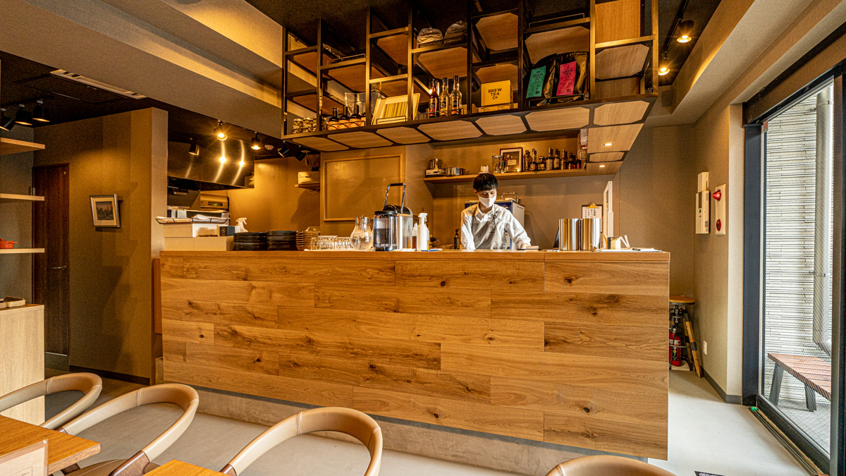 店内は4人がけのテーブルが2卓と2人がけのテーブルが1卓。小規模ではありますが、空間を贅沢に使っているので窮屈さはありません。店先にはテラス席も用意されてるので、散歩途中にワンちゃんを連れての来店も可能。ちょっとしたひと休みにぴったりなベンチもあります。